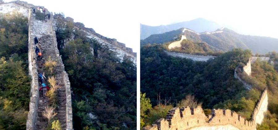 从中国东北及内蒙古高原进入北京或南下中原有三条通道:一条山海关,一条居庸关,再有一条就是这段古北口长城了。所以自古至今,这一段长城烽烟连起,以严谨的防御风格著称于世。这条穿越线路正是行走在时空隧道之上。沿长城前进,风光如同画卷在脚下铺展。周五夜间在古北口附近宿营,行进约2小时,住宿一个保存相对好些的城楼——将军楼。金山岭的云雾和彩虹是著名景观。次日可继续上行依次观赏天梯、天桥、仙女楼和望京楼等。
